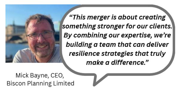 We’re thrilled to announce a strategic merger between Biscon Planning Limited and Commercial Initiatives Limited, creating one of the UK’s most comprehensive providers of business continuity, risk management, and resilience consultancy services. The newly merged company will trade under Biscon Planning Limited’s name. David Leigh is retiring from the business but Chris Ledsham will continue with Biscon. Any existing client exercises will be completed by the respective companies with full integration expected in early 2026.
